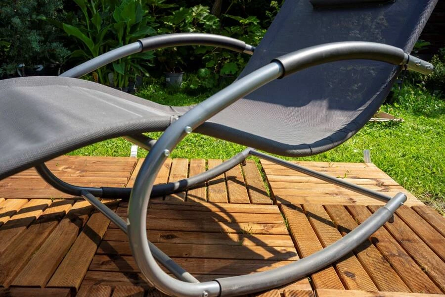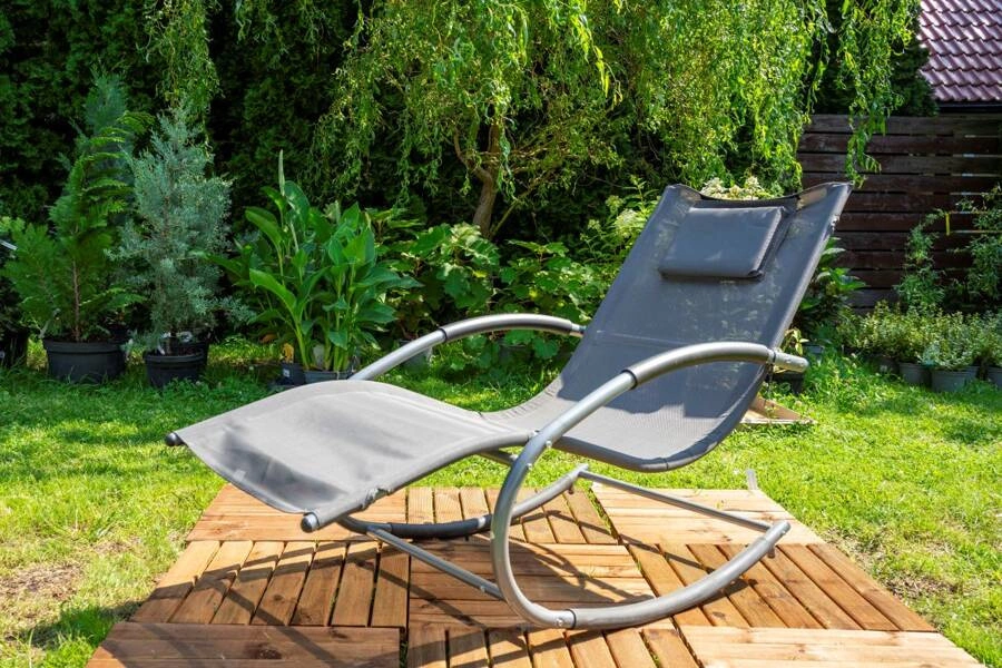 Leżak ten charakteryzuje się również wygodną, regulowaną oparciem głowy, co zwiększa komfort użytkowania. Solidna konstrukcja o średnicy rur 30/25/22 mm gwarantuje nośność do 120 kg, przy własnej wadze netto 10,3 kg. Jego funkcja pozwala na relaksujące kołysanie się, zapewniając maksymalne odprężenie i komfort.