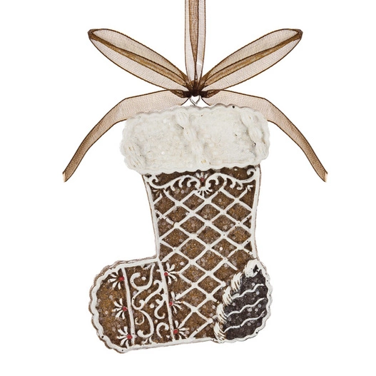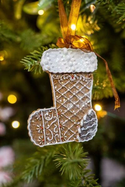 Atrakcyjna wizualnie zawieszka, którą przygotowano w kształcie piernikowego buta. Jest to niezwykle klasyczna dekoracja, która wprowadza mnóstwo ciepła i magii do każdego wnętrza, zwłaszcza w okresie Bożego Narodzenia.