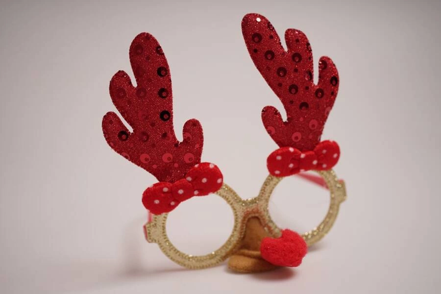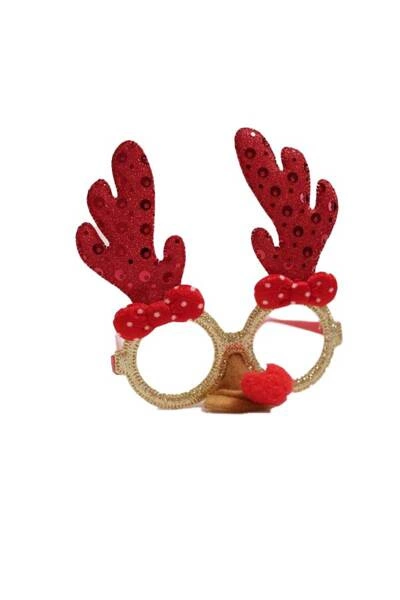 - Okulary świąteczne renifer czerwone rogi z cekinami