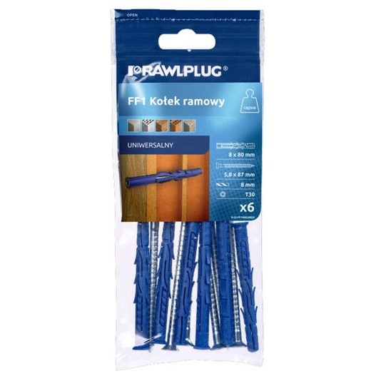 Kołek ramowy z łbem stożkowym RFF1 8x80mm sprawdzi się przy montażu klimatyzacji, wentylacji, akcesoriów łazienkowych, szafek, wsporników, uchwytów ściennych, drzwi, okien, instalacji elektrycznych, mebli, bram, poręczy, szafek kuchennych, anten satelitarnych, uchwytów TV i fasad wentylowanych. Idealny do prac remontowych i budowlanych w domu, biurze czy warsztacie.