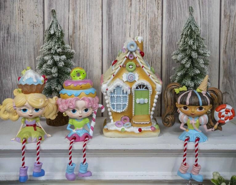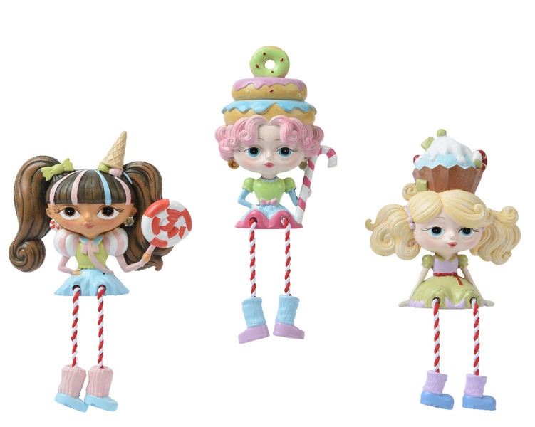Figurka przedstawiająca dziewczynkę ze zwisającymi nogami w pastelowych barwach.