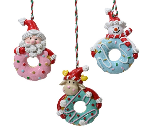 - Zawieszka Mikołaj, Renifer, Bałwan pastelowy na pączku 9,6 cm