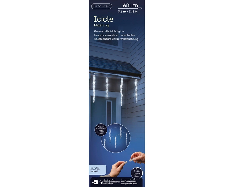 - Sople 60LED Flesz 3,6m srebrny zimny biały