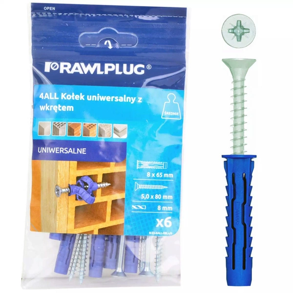 - Kołek uniwersalny 4ALL 8x65mm z wkrętami 5x80mm 6sztuk