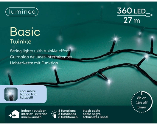 Lampki zewnątrz 360Led 27m czarny/ zimny biały Flesz 8funkcji