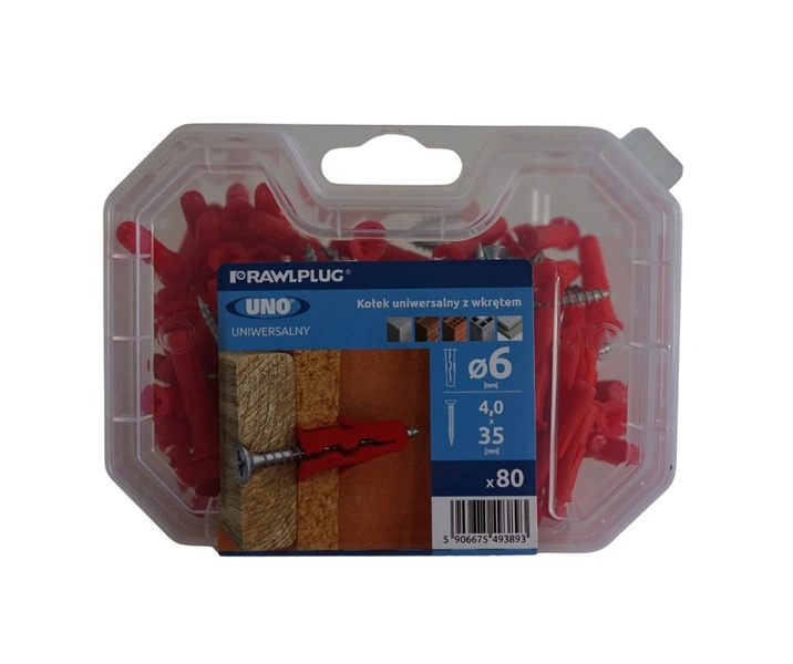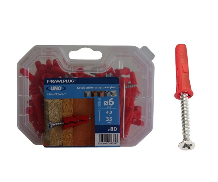 - Kołek rozporowy uniwersalny UNO6x28mm z wkrętem 4x35mm 80szt