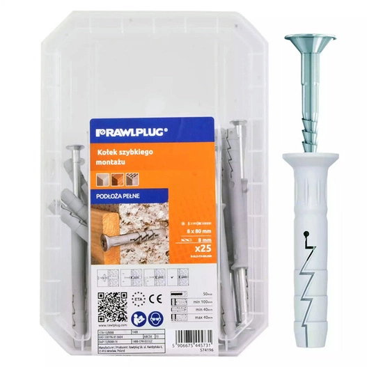 Kołek do wbijania 8x100mm bez kołnierza idealnie nadaje się do montażu listew, profili, elementów wykończeniowych, uchwytów oraz lekkich konstrukcji w betonie, cegle, pustaku i innych podłożach mineralnych. Jest niezastąpiony podczas prac remontowych i budowlanych w domu, biurze oraz obiektach przemysłowych.