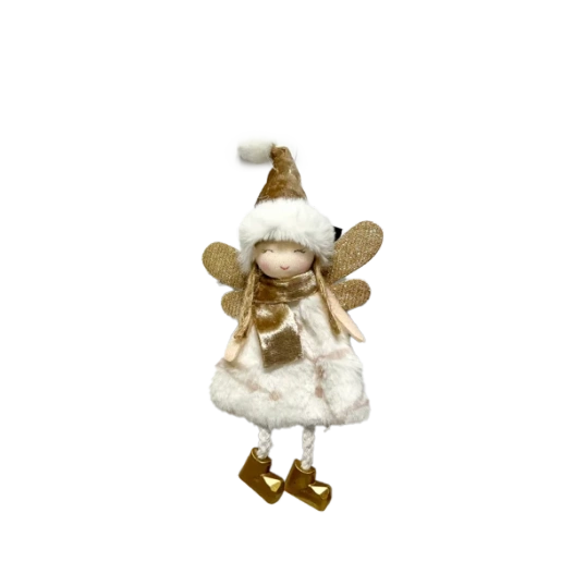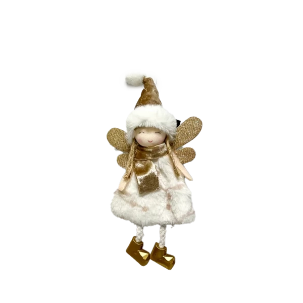 - Zawieszka aniołek futerko biało złoty 18 cm mix