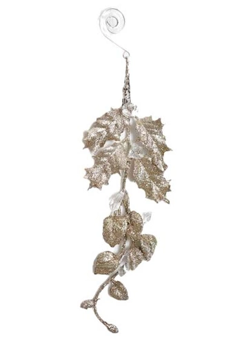 Zwisająca gałązka szampański ostrokrzew brokat kryształy 23cm