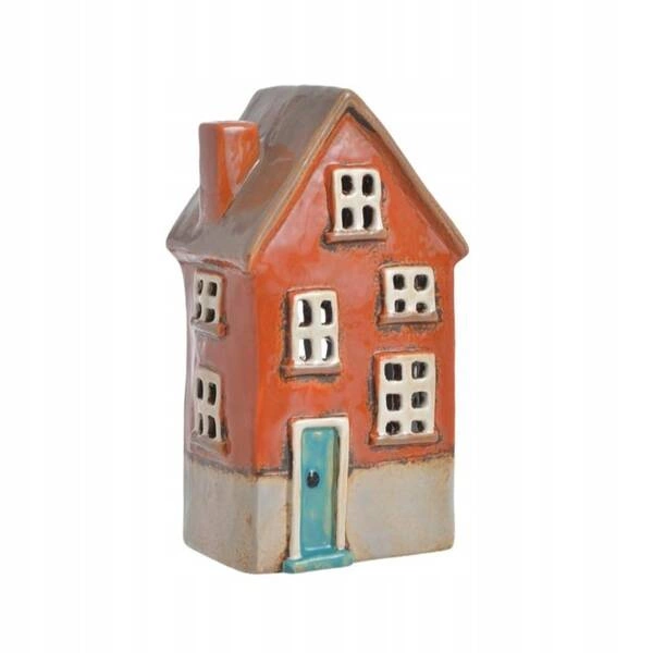 - Domek holenderski T-light ceramika rudy z niebieskimi drzwiami