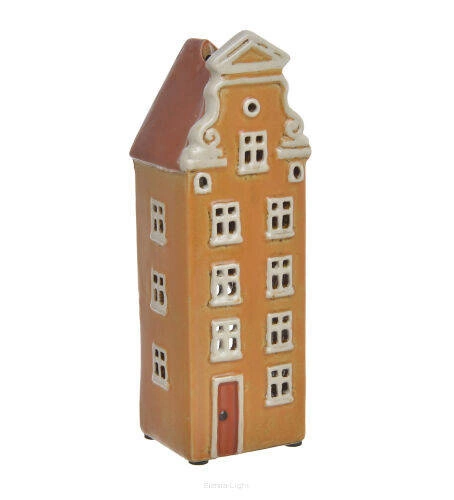 Ustaw Domek Holenderski na T-light na parapecie, by wieczorami ciepłe światło migotało w oknach i tworzyło nastrojową scenerię widoczną także z zewnątrz. W salonie postaw go na komodzie obok ulubionych książek, ramki ze zdjęciem lub wazonu z kwiatami – stworzy spójny, elegancki kącik dekoracyjny.