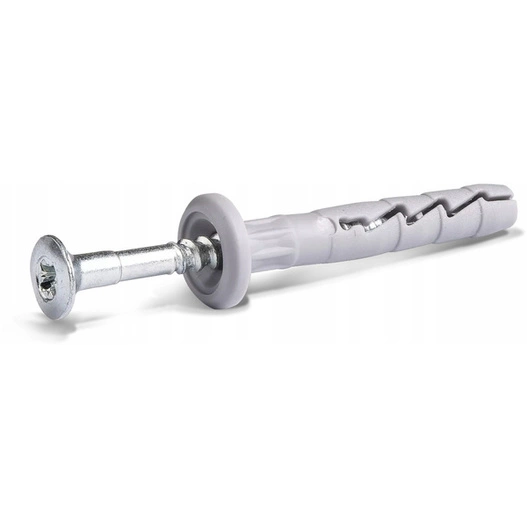 Kołek wbijany szybkiego montażu z kołnierzem 6x60mm to niezawodne rozwiązanie do sprawnego mocowania w betonie, cegle i innych materiałach budowlanych. Dzięki zastosowaniu końcówki typu grzybek oraz połączeniu gwintu śrubowego z końcówką Pozidriv, montaż jest wyjątkowo prosty i szybki. Wysokiej jakości polipropylen zapewnia odporność na wilgoć oraz większość związków chemicznych, co przekłada się na trwałość i bezpieczeństwo użytkowania. Idealny do seryjnych instalacji, szczególnie polecany do prac wykończeniowych, montażu profili, ram, instalacji elektrycznych oraz systemów gipsowo-kartonowych. Opakowanie zawiera 50 sztuk, co pozwala na ekonomiczne i wydajne prace montażowe.