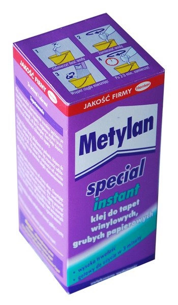 Klej do tapet winylowych special instant 200g Metylan przeznaczony jest do klejenia tapet winylowych, grubych papierowych, strukturalnych typu raufaza oraz akrylowych. Idealnie sprawdza się na świeżych, pyło-suchych tynkach, zarówno w nowych, jak i remontowanych pomieszczeniach mieszkalnych, biurowych czy usługowych.