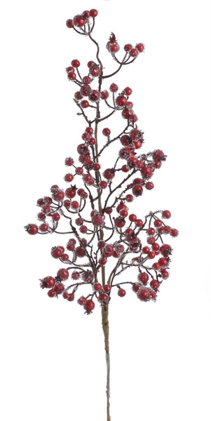 Sztuczna gałązka głogu. Może stanowić samodzielną ozdobę lub stać się częścią większej kompozycji dekoracyjnej, np. przy stroikach.