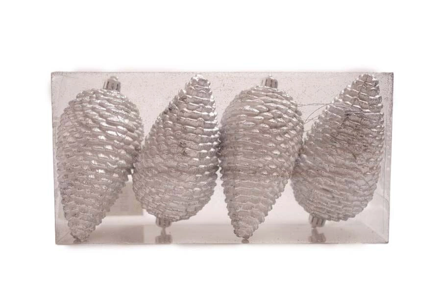 - Bombki szyszki 12cm srebrne 4 sztuki