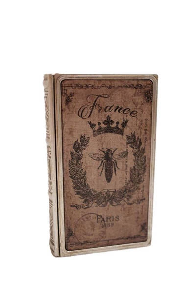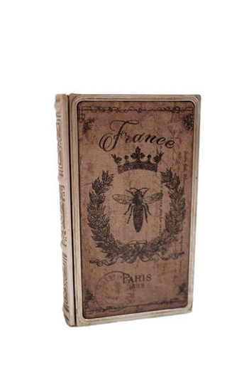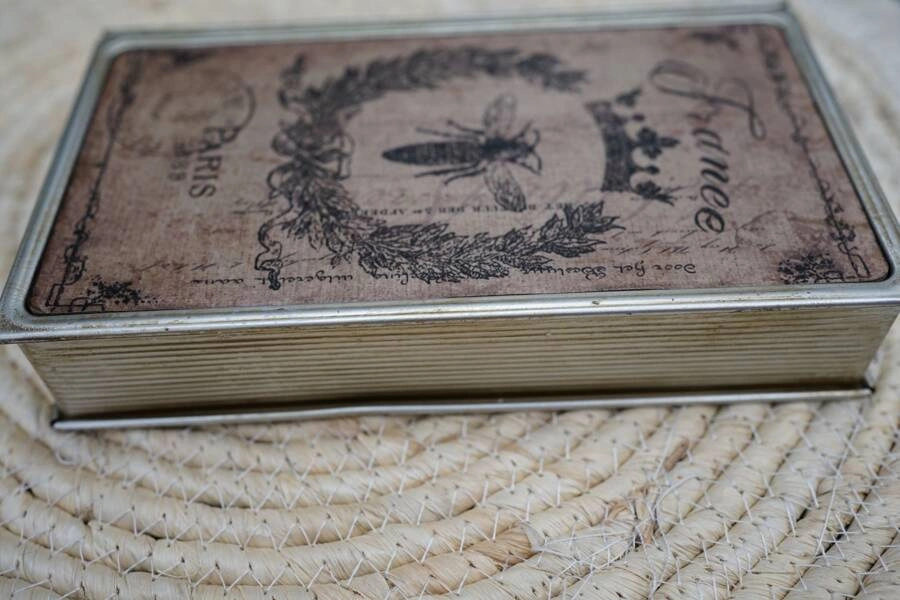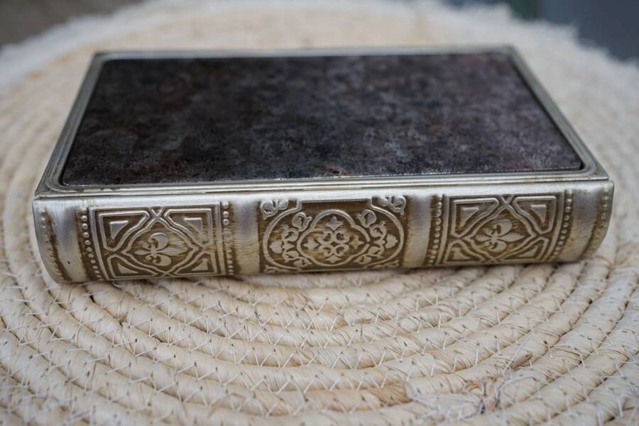 - Pudełko metalowe książka beżowa 20x12x4 cm