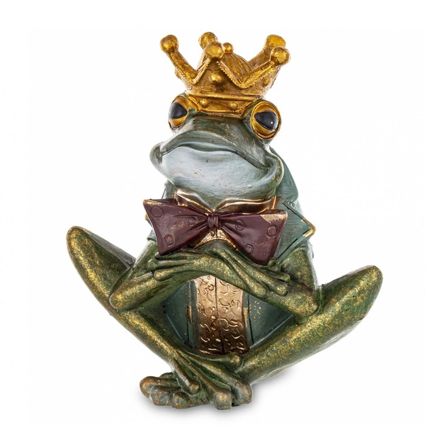 Figurka przygotowana z ceramiki. Uformowano ją w kształt żaby, na której głowie osadzono koronę. Doskonale komponuje się z wnętrzami o każdym charakterze, stając się wyrazistym i ważnym elementem ozdobnym każdego pomieszczenia, w którym zostanie umieszczona.