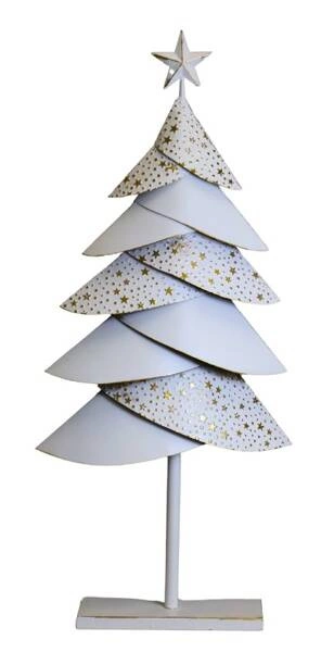 Blaszana figurka przedstawiająca biało-złotą choinkę z gwiazdką. Wnosi do wnętrza ciepłą, wspaniałą atmosferę Bożego Narodzenia.