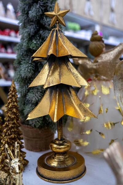 - Choinka metalowa z gwiazdą złoto-patyna 39 cm