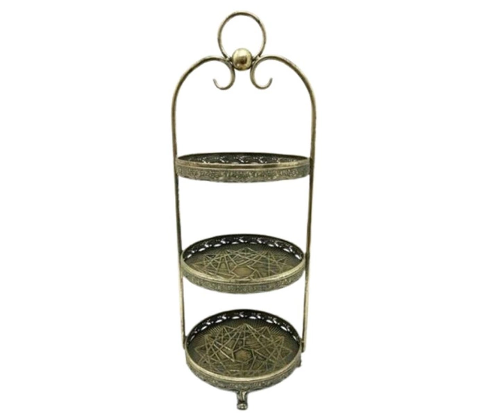 Piękna patera o trzech poziomach, przygotowana w niesamowicie wyrazistym i ładnym kolorze - patynowanego złota. Jest to ozdoba każdego spotkania i doskonały sposób eksponowania dań i deserów.