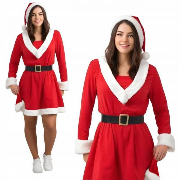Wykonany z przyjemnego w dotyku materiału, świetna alternatywa dla Pań poszukujących przebrania na bożonarodzeniowe przyjęcia.