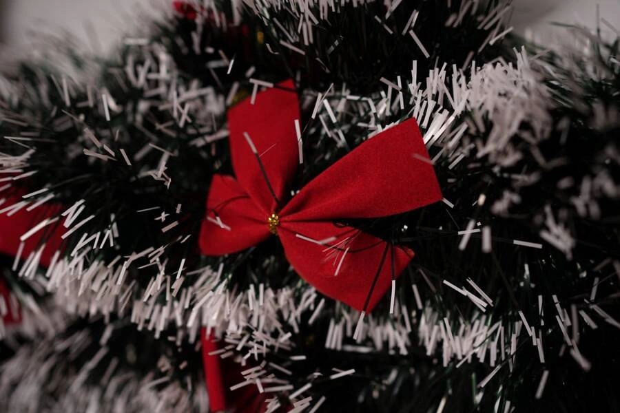 Piękny, bardzo wyrazisty łańcuch choinkowy. Doskonała ozdoba, która zamieni Twoje świąteczne drzewko w niezwykle magiczną przestrzeń, która rozleje się swoim urokiem po całym wnętrzu domu. Wyrazisty zielony kolor z czerwonymi kokardkami sprawi, że nie da się przejść obojętnie koło tej ozdoby.