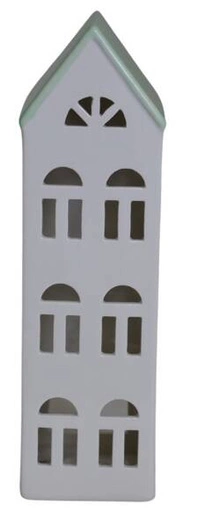 Domek ceramiczny biały na t-light miętowy dach 3 piętrowy lampion świecznik 30cm