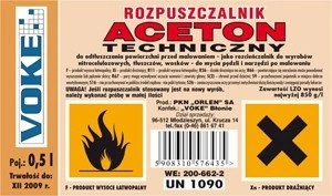 - ACETON przeznaczony do odtłuszczania powierzchni przed malowaniem jako rozcieńczalnik do wyrobów nitrocelulozowych, tłuszczów oraz do mycia narzędzi po malowaniu.