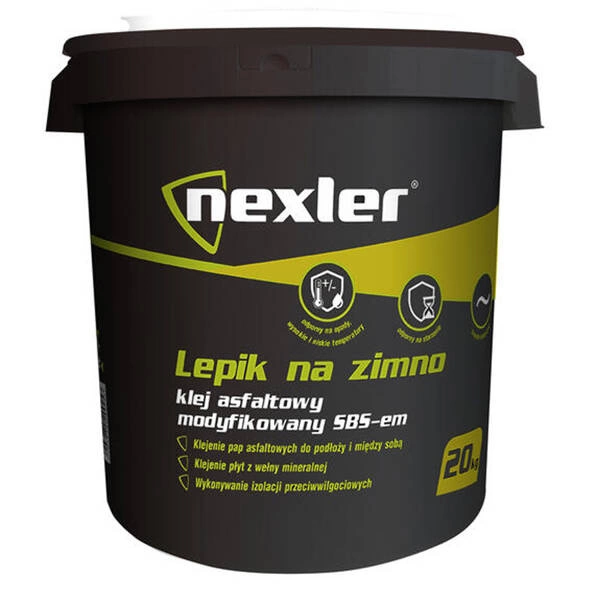 Modyfikowany SBS lepik na zimno, który przeznaczony jest do użytku zewnętrznego, do klejenia asfaltowych pap tradycyjnych: do podłoży mineralnych oraz do pap asfaltowych w układach wielowarstwowych, również do klejenia płyt z wełny mineralnej przy ocieplaniu stropodachów i do wykonywania izolacji przeciwwilgociowych podziemnych części budynków i budowli.