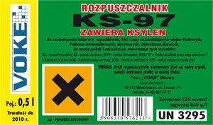 - Rozpuszczalnik KS-97 przeznaczony do rozcieńczania lakierów, klei i mas uszczelniających olejno-ftalowych, ftalowo – karbamidowych, chlorokauczukowych oraz do mycia narzędzi.