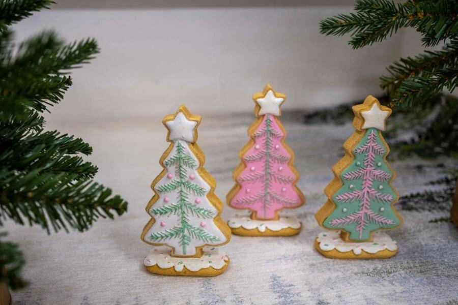 Choinka z piernika pastel róż/biała/turkusowa płaska 15cm