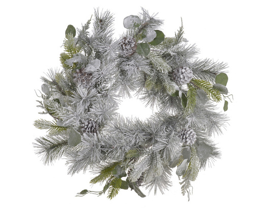 - Wianek silikonowy z szyszkami i liśćmi śnieżony 55cm