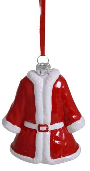Bombka płaszcz Mikołajowej biało-czerwony 9cm