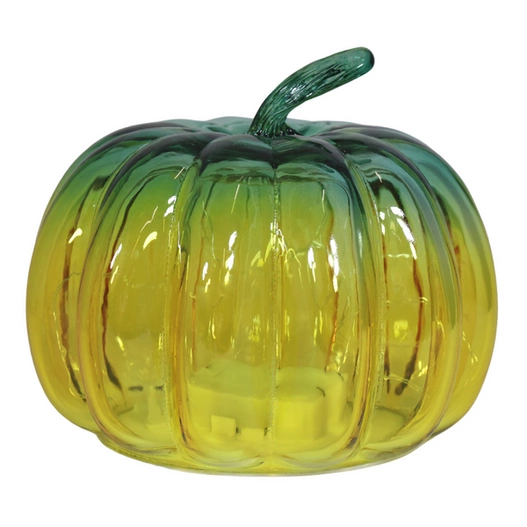 Szklana dekoracja przedstawiająca dynię, doskonale komponująca się z okresem jesieni, ale wpasuje się również jako dekoracja podczas pozostałych pór roku.
