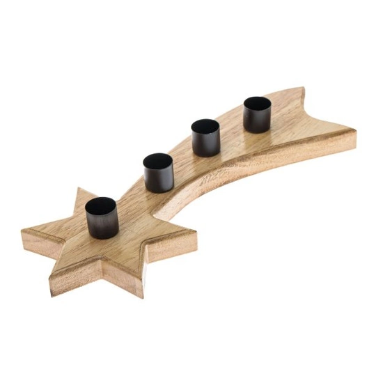Świecznik drewniany gwiazda betlejemska czarne uchwyty 32x11,5cm