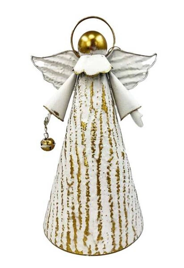 - Anioł metalowy biało-złoty przycierany z dzwonkiem 45 cm