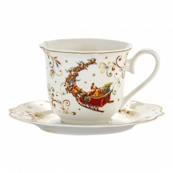 Filiżanki ze spodkiem Mikołaj na saniach 250 ml 2 sztuki