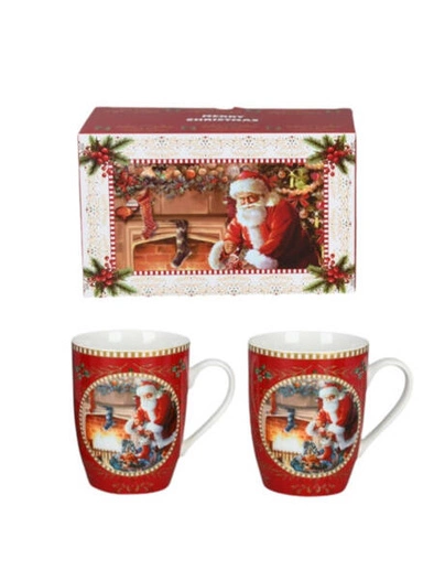 Kubki 360ml Mikołaj przy kominku 2 sztuki sprawdzą się idealnie podczas świątecznych spotkań, rodzinnych śniadań oraz zimowych wieczorów przy kominku. Doskonałe do serwowania gorących napojów, a także jako element dekoracyjny stołu lub prezent dla bliskiej osoby.