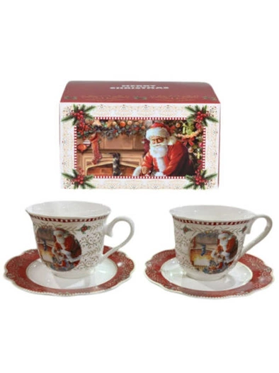 - Filiżanki ze spodkiem Mikołaj przy kominku 250 ml 2 sztuki