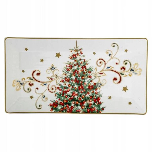 - Patera prostokątna Choinka czerwone bombki złote ranty 25,5x14cm