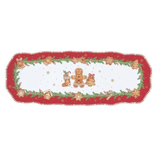 Patera owalna Ciastek biało-czerwony 37x14cm doskonale sprawdzi się podczas świątecznych przyjęć, rodzinnych obiadów i spotkań z przyjaciółmi. Idealna do serwowania ciast, ciasteczek, przekąsek, owoców oraz innych potraw wymagających eleganckiej prezentacji. Stanowi również piękną dekorację stołu przez cały rok.