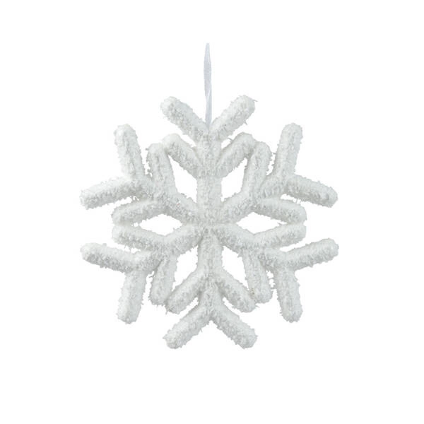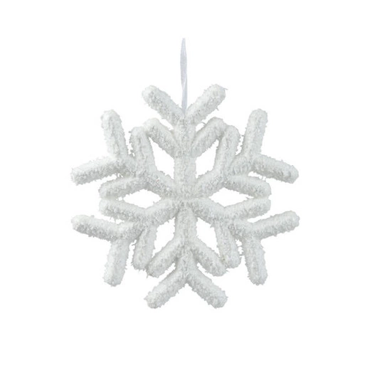 Zawieszka przygotowana w formie śnieżynki wykonanej z pianki w kolorystyce białej. Jest to wyjątkowa i bardzo atrakcyjna dekoracja bożonarodzeniowego drzewka. Wprowadza do wnętrza magię, czar i klimat świąt.