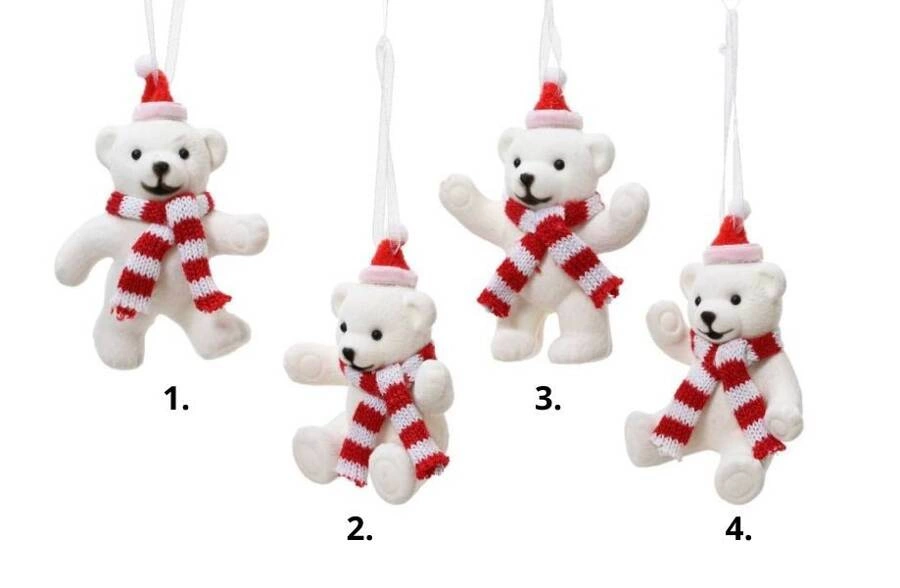 - Zawieszka Miś biały w czerwonym szaliczku i czapce 9,5cm 4 wzory