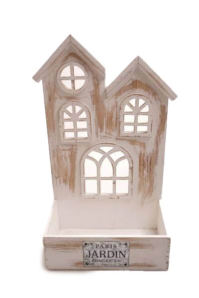 - Skrzynka drewniana domki, bielona 30x16x54cm