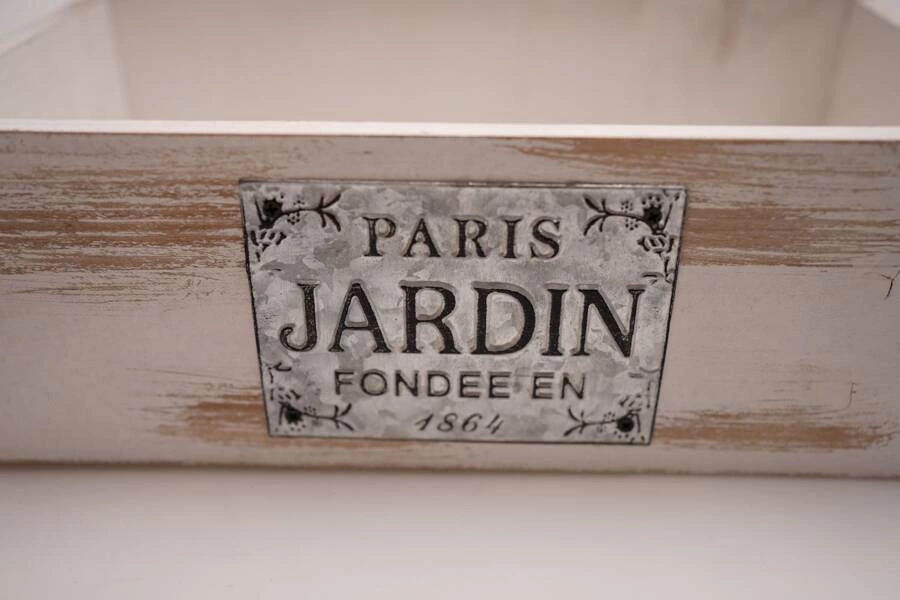 Skrzynka wykonana z bielonego drewna w kształcie domku. Tworzy wspaniałą dekorację i doskonałą podstawę dla upraw. Pozwala na atrakcyjną ekspozycję roślin, budując dekorację wnętrza, która znacząco wpływa na jego klimat.