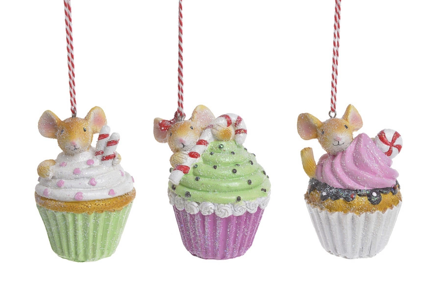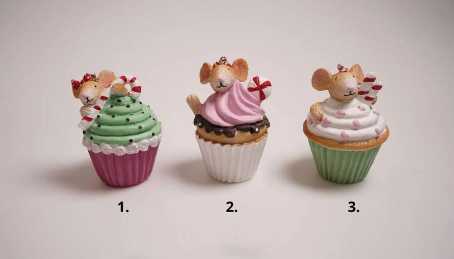 Urocza zawieszka w postaci myszki w babeczce. To dekoracja, która wypełnia czarem całe wnętrze domu, dbając o klimat i nastrój. Idealnie komponują się z okresem zimy i świąt Bożego Narodzenia.