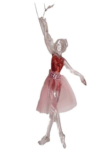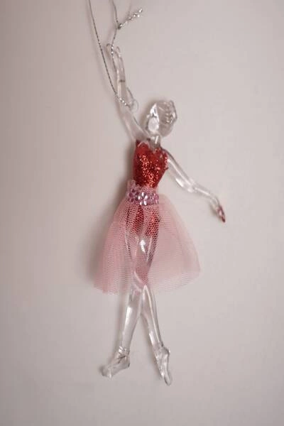 Akrylowa zawieszka na choinkę przedstawiająca baletnicę. Forma dekoracji bożonarodzeniowej, podkreślającą klimat i nastrój Świąt.