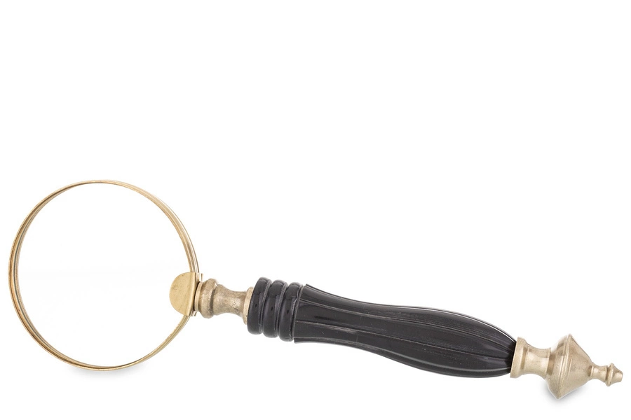 Dekoracja przygotowana w formie lupy w złotej kolorystyce z czarną rączką. Doskonale nada się do czytania map, czasopism, etykiet produktów czy oglądania biżuterii.