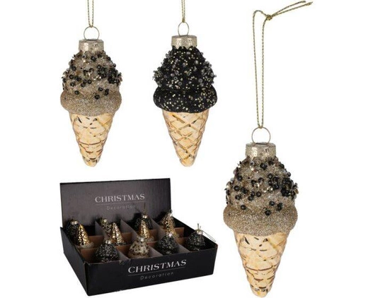 Bombka szklana LÓD 9cm złoty/czarny 1 sztuka