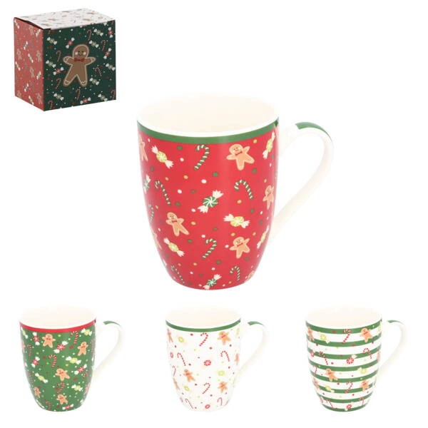 Kubek 340ml BN pierniczki biały/zielony/czerwony/w paski